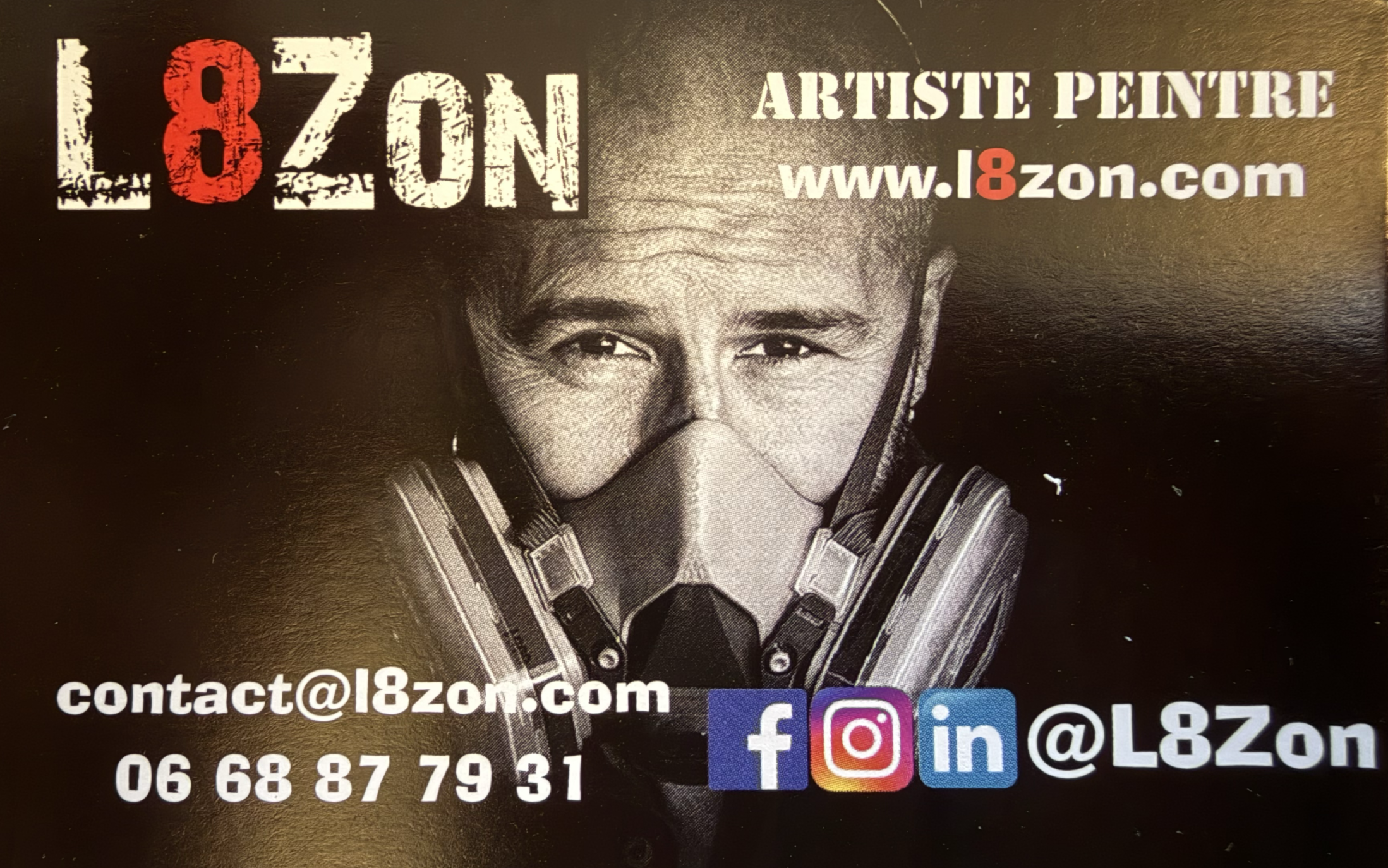 L8ZON (Stéphane Leroy) peint au pochoir, au spray, à la découpe. Ça se prépare, ça se construit, ça se règle au millimètre, puis ça sort d’un bloc, net, lisible, tendu. Il y a chez lui cette double pulsation : le coup de bombe et la part sensible. Le punk, chez L8ZON, n’est pas un décor : c’est une mémoire active. Une musique qui a planté sa graine tôt, et qui continue de pousser — dans les tableaux comme sur les murs.